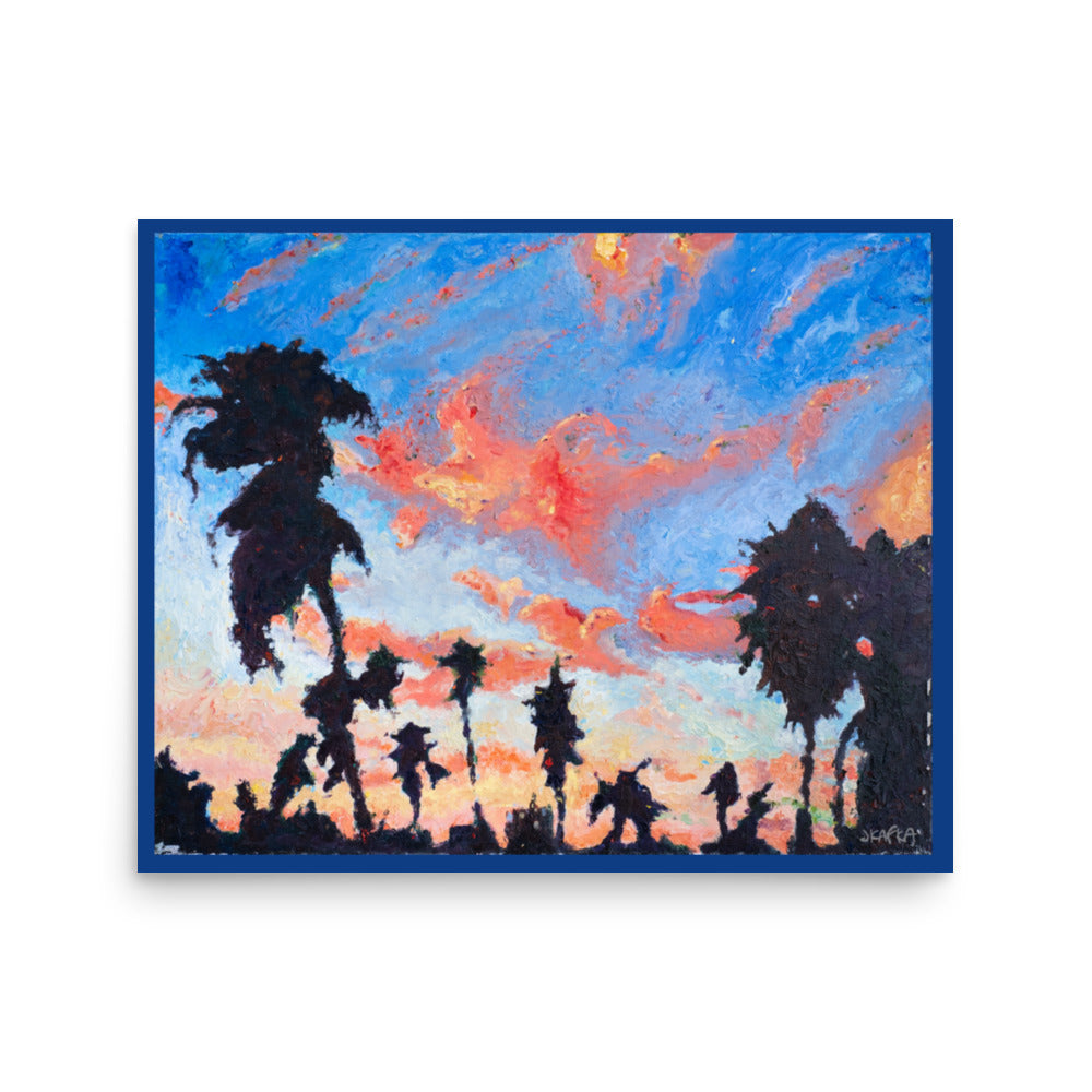 Just another sunset over the North Hollywood (NoHo) LA Metro Station parking lot.Invite the magic of an LA sunset into your space with this NoHo Sunset art print for sale. Marvel at the magnificent silhouette of palm trees set against a flurry of characteristically Californian hues.